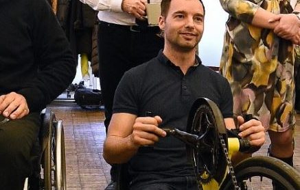 Terénní motorový vozík pro invalidy, jak se také čtyřkolce říká, je automat, má ruční ovládání a přední náhon, což ale podle Fridricha vyžaduje zkušenosti, aby stroj řidiče nepřevrhl. „Každou chybu to trestá,“ dodal motorista, který vyzkoušel i motokáry. První kolo si oťukal, vyzkoušel brzdy a náklony a pak si už užíval adrenalin.
