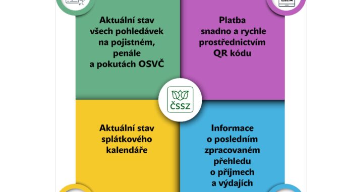 Česká správa sociálního zabezpečení (ČSSZ) spustila 14. ledna 2024 novou online službu Stav pohledávek na pojistném, penále a pokutách OSVČ, která je další částí digitální komunikace mezi osobami samostatně výdělečně činnými (OSVČ) a ČSSZ/ÚSSZ (územními správami sociálního zabezpečení). V této nové službě ePortálu ČSSZ najdou OSVČ veškeré informace o aktuálním stavu pohledávek, vyúčtování přehledu o příjmech a výdajích a další údaje.