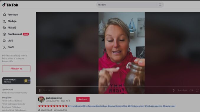 Na svém tiktokovém účtu Jaroslava Svobodová vystupuje jako Jarka Jarulinka a mimo jiné prodává i domácí kosmetiku.